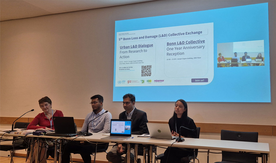On the eve of the Glasgow Dialogue, an official side event on financing locally-led adaptation and addressing loss and damage to build climate-resilient communities in mountain regions and beyond took place on June 4th, emphasizing the relevance of the overall agenda related to Loss and Damage. Panelists included Bimal Raj Regmi, member of the Climate Change Council of the Government of Nepal; Harjeet Singh, Director of FFNPT; Popular Gentle, Climate Change Advisor to the Prime Minister of Nepal; Wanun Permpibul, Director of Climate Watch Thailand; and Sumaiya Binte Selim, Programme Coordinator at ICCCAD, with Abhishek Shrestha, Program Director at DBI, moderating the discussion. The panel highlighted the significant threat climate change poses to mountain ecosystems in South and Southeast Asia and stressed the importance of locally-led adaptation approaches for sustainable management and addressing loss and damage. ICCCAD demonstrated how integrating research can provide valuable evidence from economic and non-economic loss and damage perspectives, which can then be channeled towards locally-led adaptation efforts. Additionally, the discussion addressed the extreme challenges in accessing international climate finance, underscoring the urgent need to simplify the access process, provide direct, predictable, and adequate funding, and ensure timely delivery to support mountain communities. The session’s reflections were influential and contributed to the participatory reflections at the Glasgow Dialogue by parties and observers.