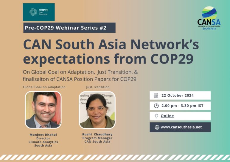 CAN South Asia Network’s expectations from COP29 On Global Goal on Adaptation, Just Transition, & finalisaiton of CANSA Position Papers for COP29