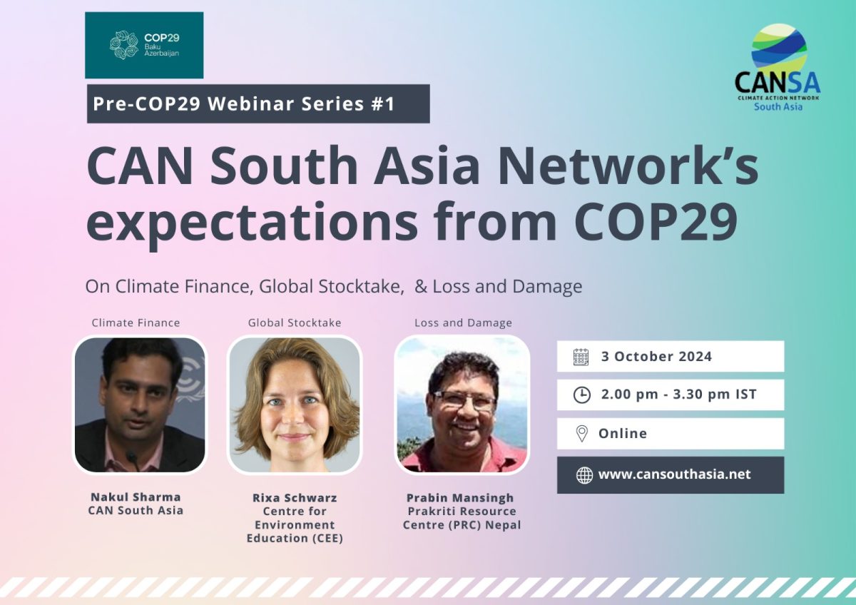 CAN South Asia Network’s expectations from COP29 On Climate Finance, Global Stocktake, & Loss and Damage