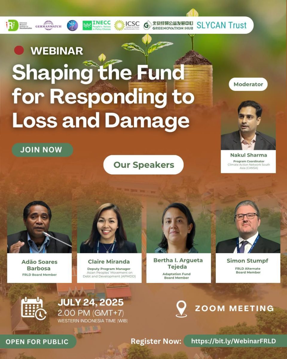 In response to this urgency, the Indonesia Research Institute for Decarbonization (IRID), Germanwatch, the Institute for Climate and Sustainable Cities (ICSC), LAYA-INECC, Greenovation Hub, and SLYCAN Trust are convening the second knowledge-sharing session on the FRLD. This webinar will be held on: