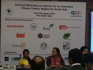 The Regional Workshop on Options for an Innovative Climate Finance Regime for South Asia was held at the India Habitat Centre in New Delhi on the 19th and 20th August 2013. The event organised by CANSA, APAN, ADAPT Asia-Pacific, LEAD brought together a group of participants which included government officials, members of civil society as well as the business sector. The workshops included panel discussions as well as group work which facilitated the comprehension of different thematic areas pertaining to climate finances for the better implementation of it in the South Asian regime.