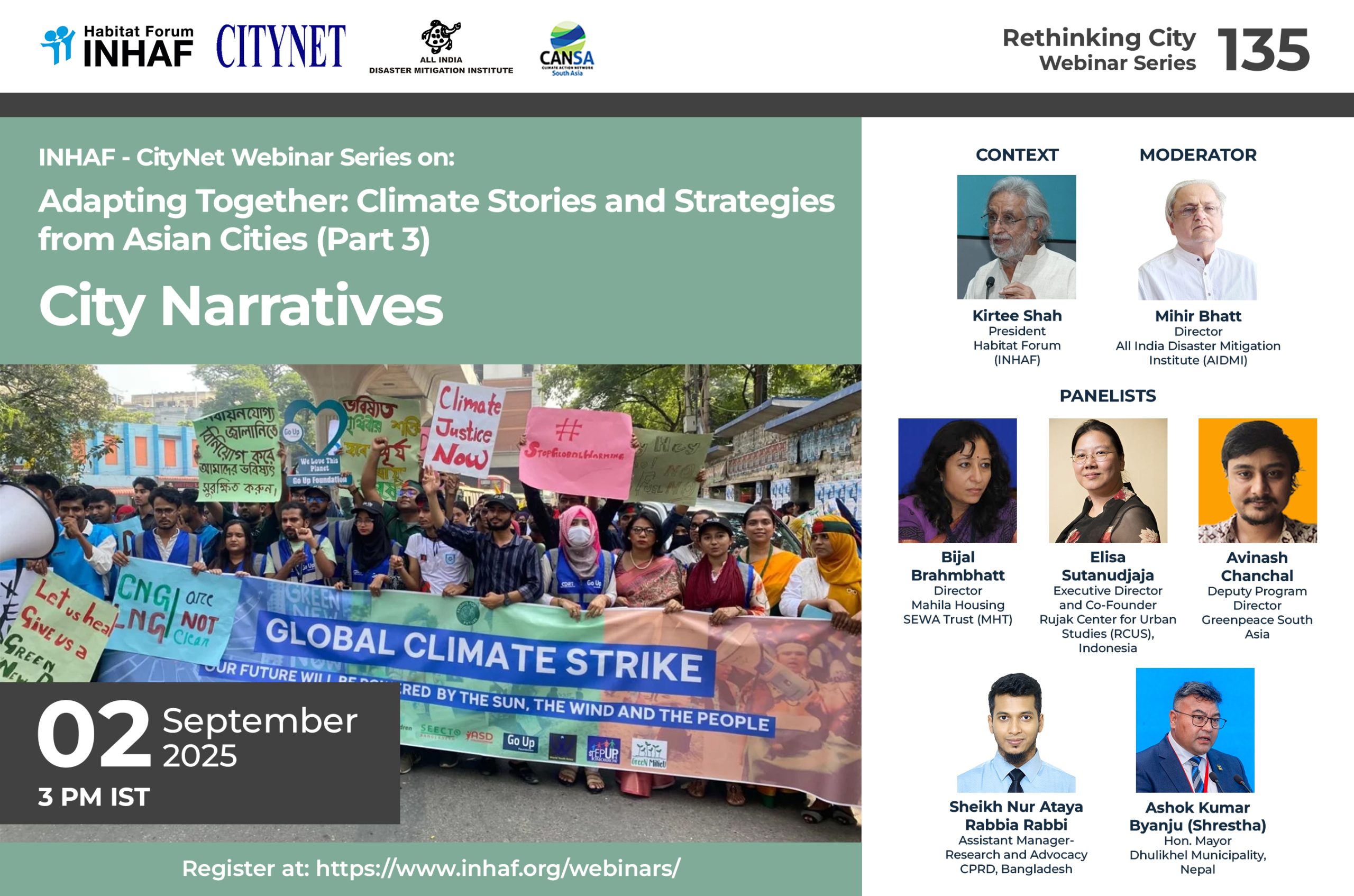 The third webinar turns its focus toward the lived experiences of climate change from the perspective of vulnerable urban populations—women, children, youth, informal settlers, and unorganized workers—who often bear the brunt of climate impacts while having the fewest resources to respond. As cities across Asia experience rising temperatures, flooding, and other intensifying hazards, this session will explore how adaptation strategies can be shaped to address not only physical risks but also the deeper social, cultural, and non-economic losses that climate change brings. From the erosion of community networks and displacement of informal livelihoods to the loss of place-based identities and urban heritage, these impacts are often invisible yet deeply felt.